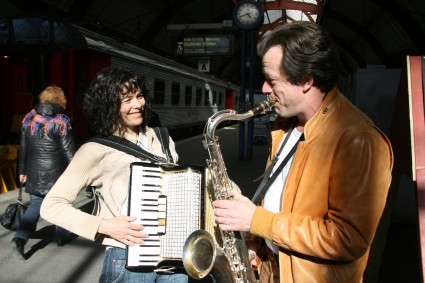 Ett halvfranskt band: Caroline & Harald Leander har både franskt, svenskt och annat på repertoaren och gjorde, tillsammans med Ann Marie i Prunes, föreställningen Malmö-Paris tur och retur 2008.